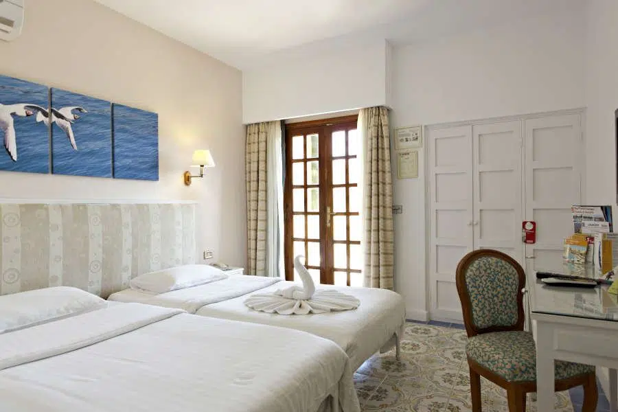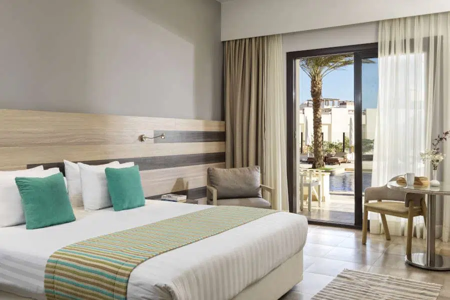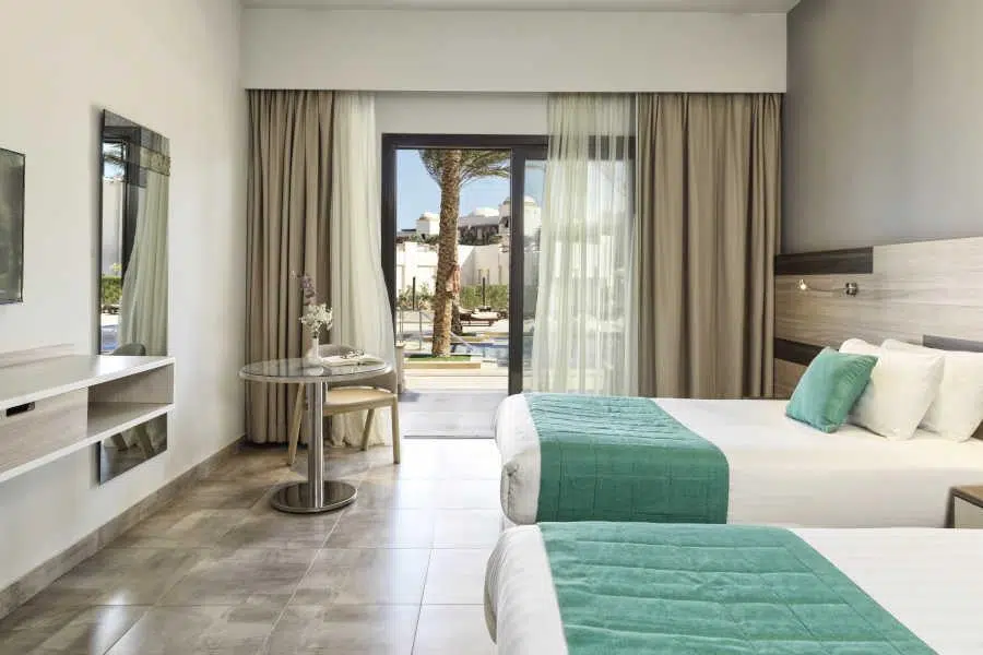 Każdy znajdzie w El Gounie coś dla siebie – od 5* luksusowych hoteli do apartamentów znajdujących się w samym centrum, bądź na samej plaży kitesurfingowej. Do wyboru mamy, aż 18 hoteli i niezliczoną ilość apartamentów na wynajem krótko i długoterminowy. Warto dodać, że El Gouna słynie z dbania o czystość i piękne otoczenie, więc znajdziecie tu przepełnione zielenią ogrody, alejki, parki i idealne miejsca na instagramowe zdjęcia. THREE CORNERS RIHANNA RESORT 4* Otoczony spokojnymi lagunami i tropikalnymi ogrodami, czterogwiazdkowy The Three Corners Rihana Resort oferuje gościom idealny rodzinny wypoczynek w tętniącym życiem mieście El Gouna. Położony w doskonałej lokalizacji znajduje się kilka kroków od spokojnych kawiarni i lokali rozrywkowych w centrum miasta, a także różnorodnych restauracji i popularnego życia nocnego w El Gounie. Odległość od bazy kitesurfingowej: 10 minut tok tokiem. Ceny wraz z przelotem od: 3000pln / os. /tydzień ALL INCLUSIVE