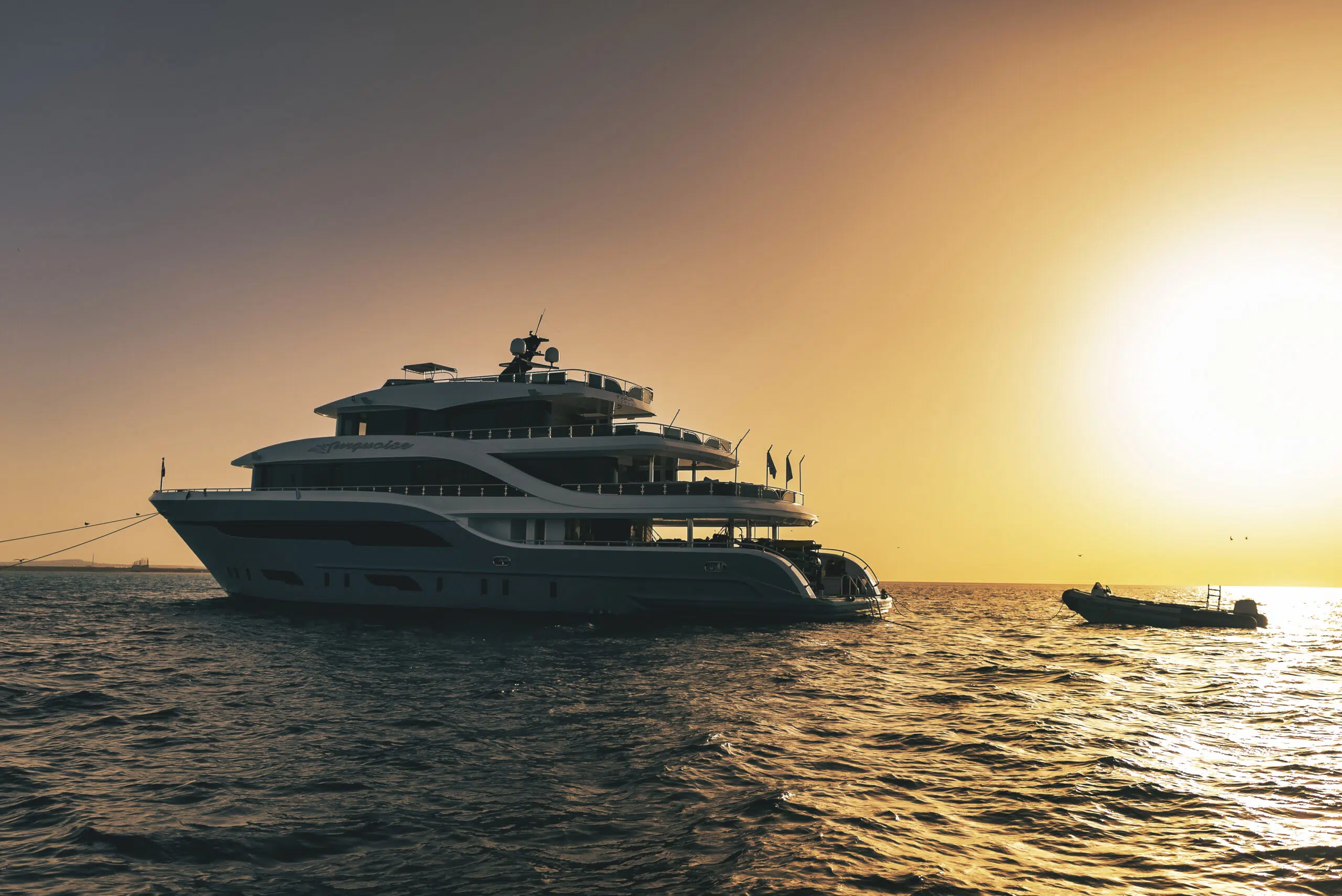 b) M/Y Turquoise 5* to 45m jacht motorowy wyposażony w 17 przestronnych kajut na 4 pokładach.