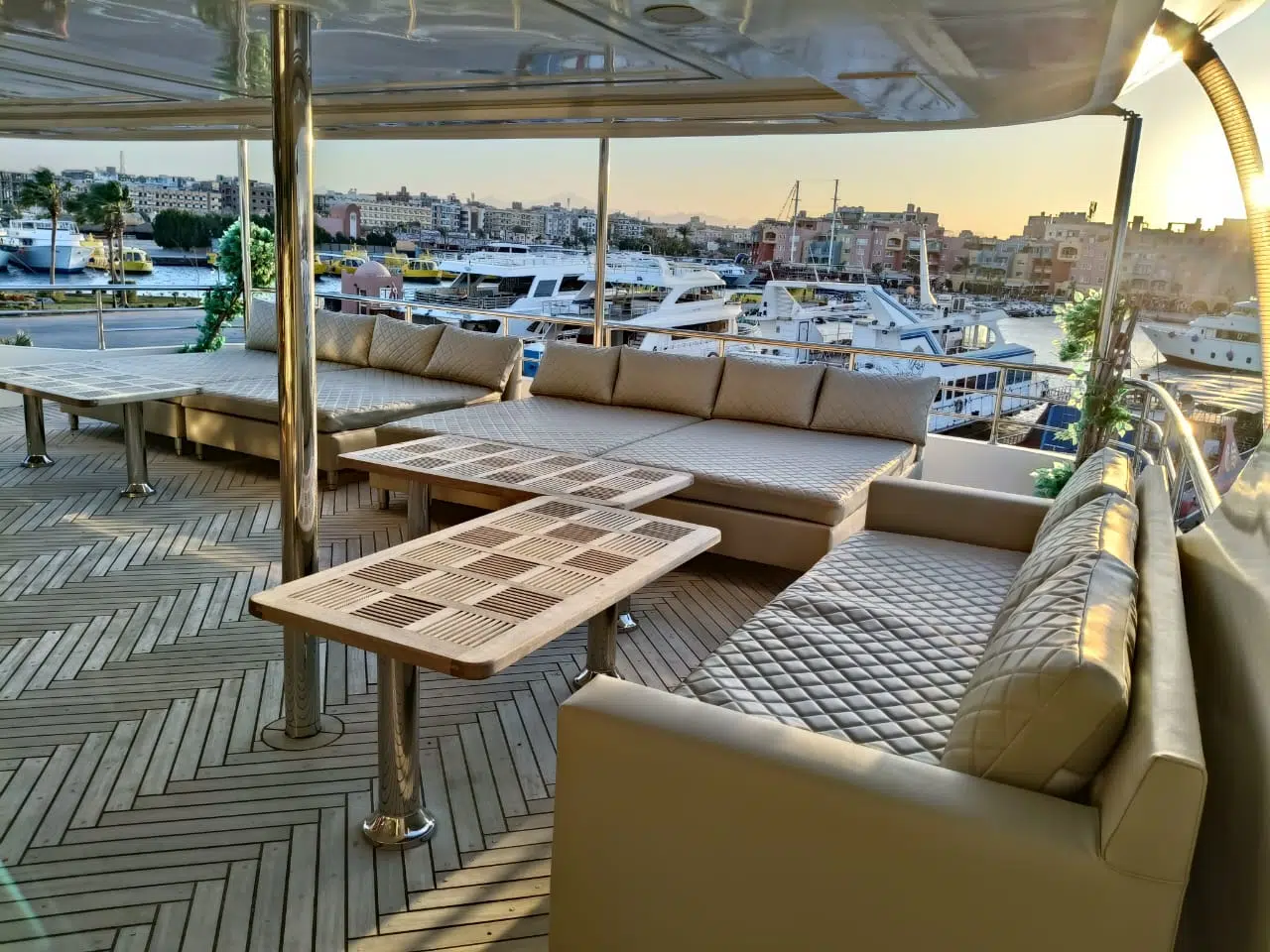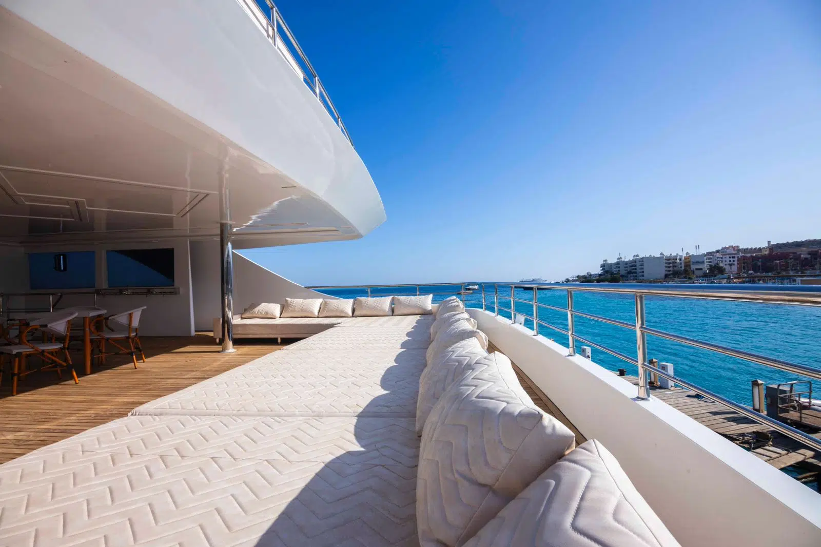 Na jachcie znajduje się też jaccuzi, sun deck, dużo miejsca do relaksu, bar z kostkarką do lodu.