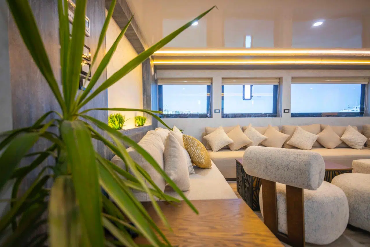 Podczas kitesafari mieszkamy przez tydzień na łodzi. Postawiliśmy na najlepsze, 5* łodzie, aby zapewnić Ci najbardziej komfortowe wakacje. Nasze łodzie to pływające, luksusowe hotele, z jacuzzi na dachu, wielką jadalnią, salonem, przestronnymi kajutami i masą dodatkowych atrakcji, takich jak: masaże, sauna, wakeboarding, snorkeling, nurkowanie, zjeżdżalnia itp.