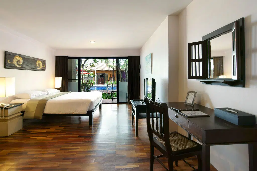 Pokój Maarataan Deluxe Pokój Deluxe z widokiem na basen i częściowym widokiem na morze, 39m2 razem z balkonem. Łóżko małżeńskie lub twin. Balkon, biurko do pracy, zestaw do kawy i herbaty, mini bar, sejf, A/C, WIFI, łazienka wyposażona w suszarkę. Pokój Sawanya Deluxe Pokój Deluxe z widokiem na basen i częściowym widokiem na morze, 42m2 razem z balkonem. Łóżko małżeńskie. Balkon, biurko do pracy, miejsce do siedzenia, sofa, zestaw do kawy i herbaty, A/C, WIFI, mini bar, sejf, łazienka wyposażona w suszarkę. 2 Bedrooms Villa Piętrowa villa z 2 sypialniami i 2 łazienkami, na parterze jeden pokój z łazienką, na górze drugi pokój z łazienką, a na dole jacuzzi. Balkon, biurko do pracy, zestaw do kawy i herbaty, A/C, WIFI, mini bar, sejf, łazienka wyposażona w suszarkę. Pokój Mintra Beach Front Pokój w pierwszej linii ze spektakularnym widokiem na morze, 49m2 razem z dużym balkonem. Łóżko małżeńskie. Balkon, biurko do pracy, zestaw do kawy i herbaty, A/C, WIFI, mini bar, sejf, łazienka wyposażona w suszarkę. Pokój SeaView Suite Pokój w pierwszej linii na piętrze z panoramicznym widokiem na morze, 62m2 razem z dużym balkonem. Łóżko małżeńskie. Balkon, biurko do pracy, zestaw do kawy i herbaty, A/C, WIFI, mini bar, sejf, łazienka wyposażona w suszarkę.Cena